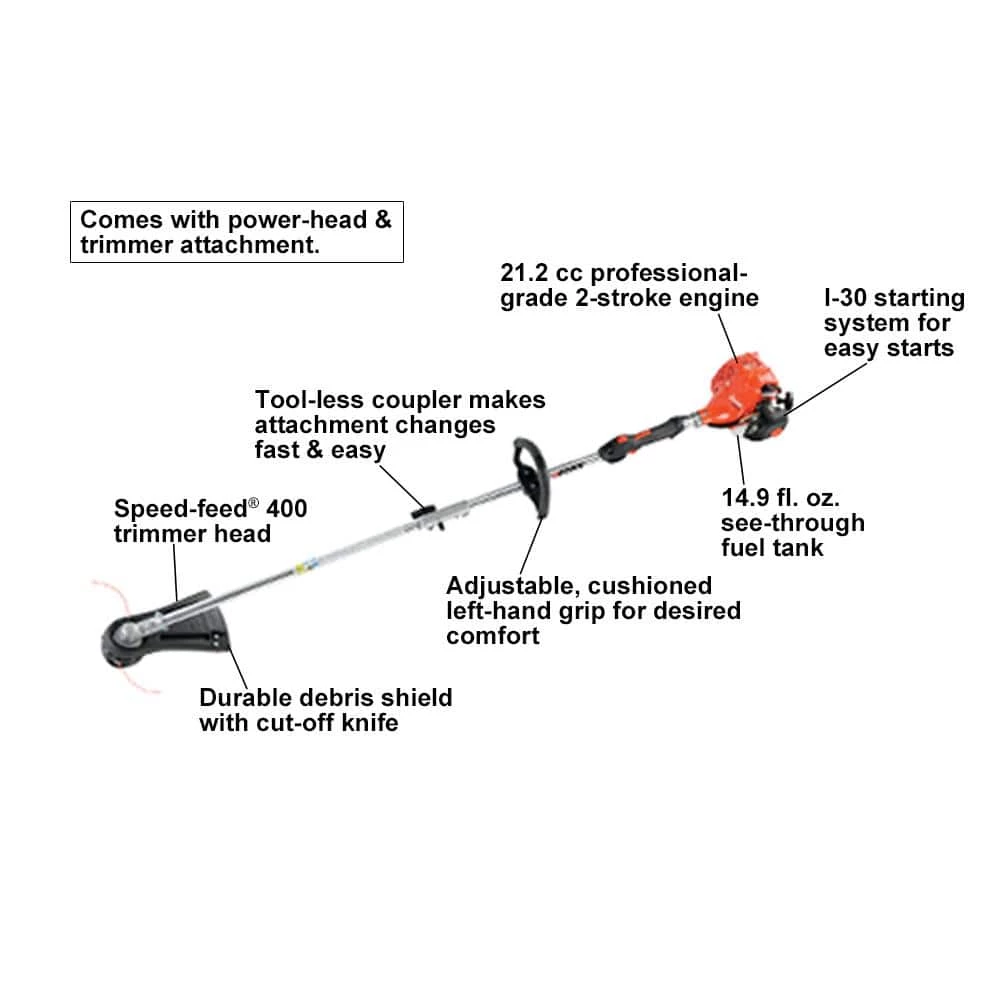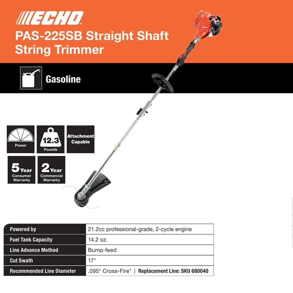 The professional-grade ECHO PAS-225SB power head comes with a lawn trimmer attachment providing an economical and versatile way to add to your yard tool arsenal. Compatible with up to 11 ECHO attachments. Tool-less coupler for easy switches between attachments. All ECHO yard trimmer engines are certified with the highest EPA engine durability rating.