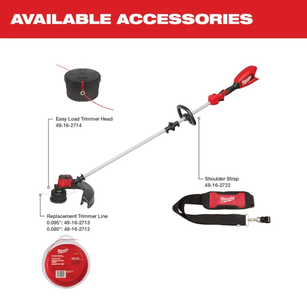 - 2828-20 M18 Brushless String Trimmer: Easy Load Trimmer Head: Easily reload trimmer line without head disassembly
