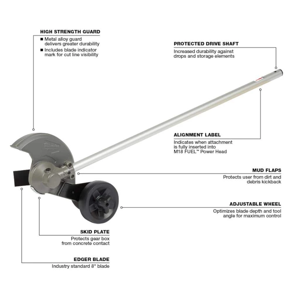 - Includes: (1) M18 FUEL power head with QUIK-LOK (2825-20), (1) M18 FUEL QUIK-LOK String Trimmer Attachment (49-16-2717), (1) M18 FUEL Blower (2724-20), (1) M18 FUEL QUIK-LOK Edger Attachment (49-16-2718), one 0.095 in. x 250 ft. Trimmer Line (49-16-2713), (1) M18 REDLITHIUM HIGH OUTPUT XC8.0Ah Battery (48-11-1880) and (1) M18 and M12 rapid charger (48-59-1808)