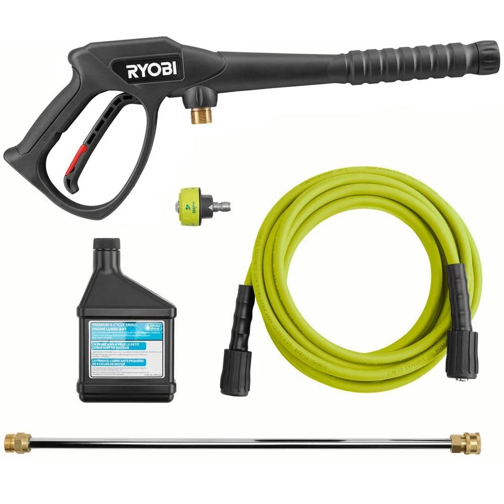 Get cleaning jobs done faster with this Ryobi 3200 psi pressure washer. Perfect for driveways, patios, and sidewalks, it features a 15-in. surface cleaner. The Kohler 196cc Engine provides 3200 PSI of force for superior clearing power. For convenient access, it features a 35-ft. non-marring high pressure hose for 40% longer reach and an on-board detergent tank. A 5-in-1 quick-change nozzle makes it simple to change spray patterns. Moving this pressure washer is easy with a sturdy hand truck frame and 12-in. wheels.