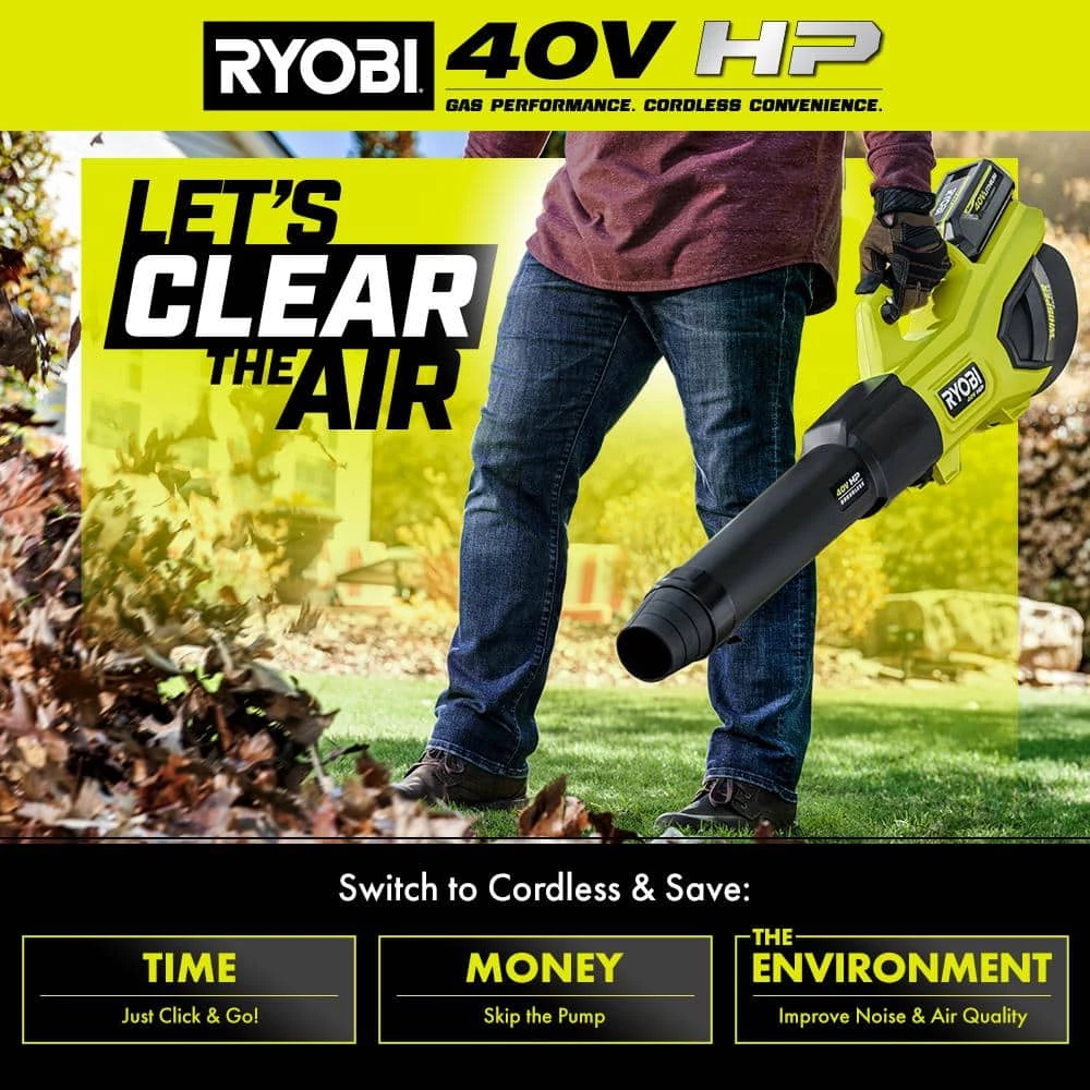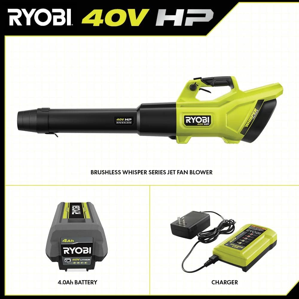 - Includes RYOBI 40V 4.0 Ah battery and charger