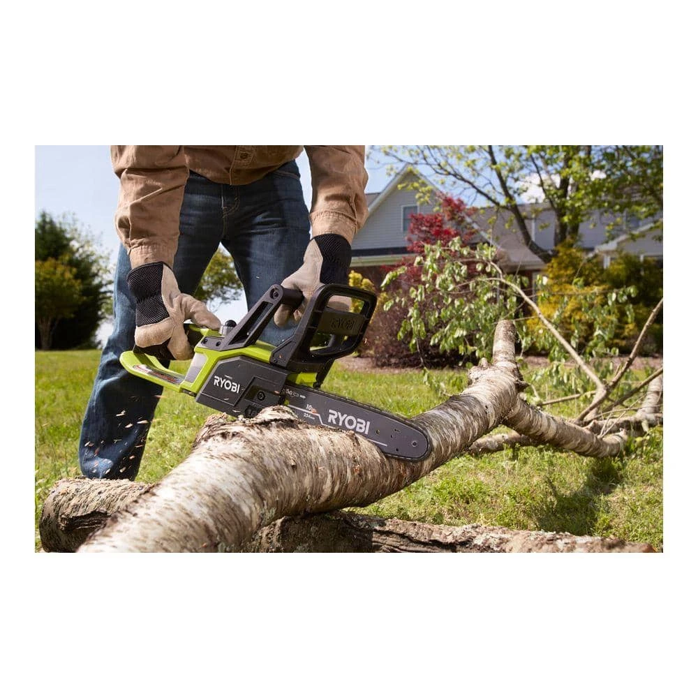 If you’re already in the ONE+ system, the RYOBI 10 in. 18V Cordless Chainsaw is ideal for all of your light cutting needs. Featuring a 10 in. bar and chain, this chainsaw allows effortless cleanup of unsightly branches and limbs in your yard. The ONE+ Chainsaw redefines the 18V category by delivering the power and performance you’d expect from higher voltage lines, while its lightweight, compact design make it comfortable and easy for anyone to operate. With its push-button oiler and on-board tool storage for chain tensioning adjustments, you have everything you need on the tool to get the job done. The machine is backed by a 3-year limited warranty.