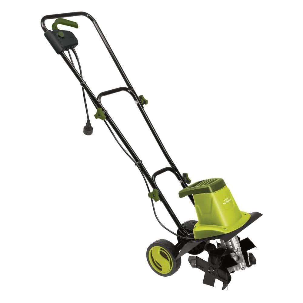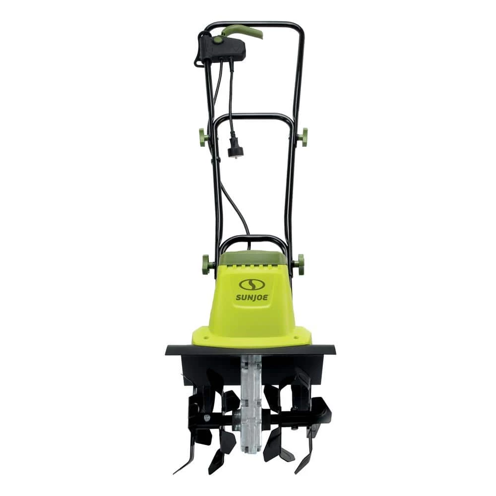 Prepare your garden spot like a pro with the Sun Joe TJ602E Electric Tiller Cultivator. Its powerful 8-amp motor cuts through the soil at 300 rpm for maximum aeration. The machine cultivates an area 12 in. wide and up to 8 in. deep in just seconds. Its 3-position, height-adjustable rear wheels provide easy movement and the collapsible handle makes it simple to store. This reliable garden tool is backed by a full two-year warranty.