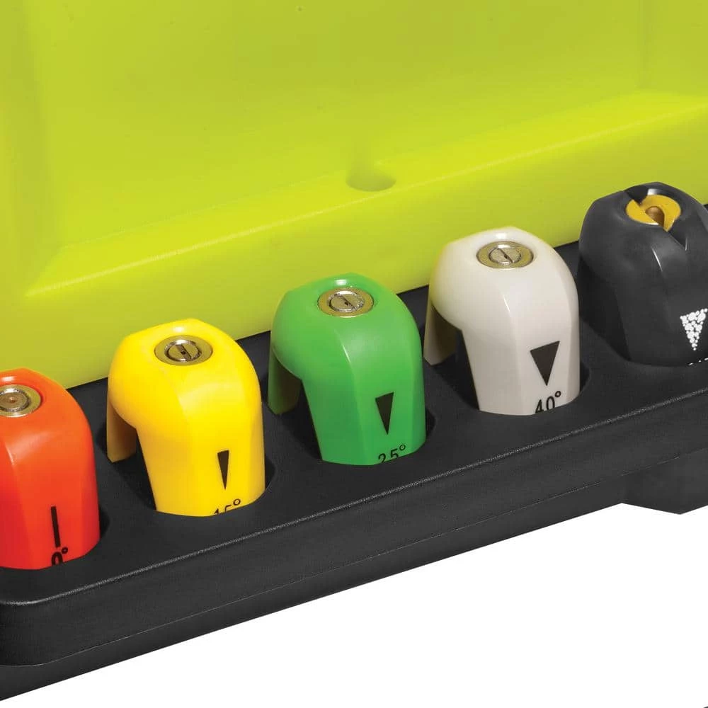 - 5 quick-connect spray tips (0°, 15°, 25°, 40°, soap) tackle light, medium and heavy duty cleaning tasks