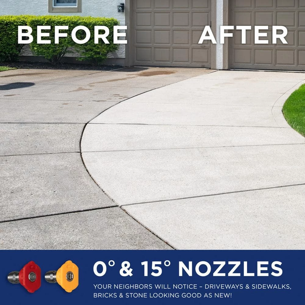- 5 Quick Connect nozzles: 0°, 15°, 25°, 40°, and soap applicator tip for adjustable spray